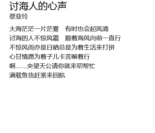 | 讨海的人不惊风霜 顺着海风向前一直行 | |