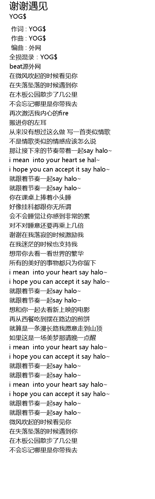 | [00:39.539] | 就跟着节奏一起say halo~ |