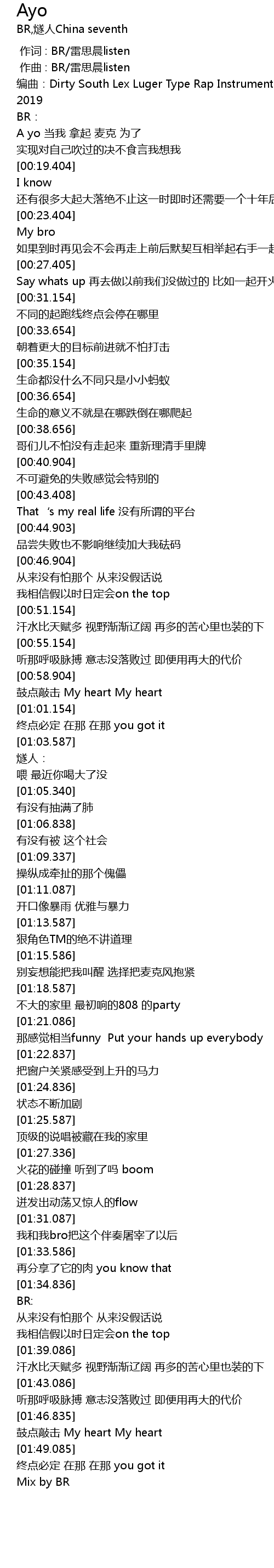 | [00:01.000] | 作曲 : BR/雷思晨listen |
