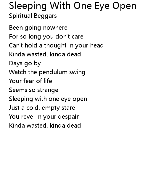 | Song | Sleeping With One Eye Open |