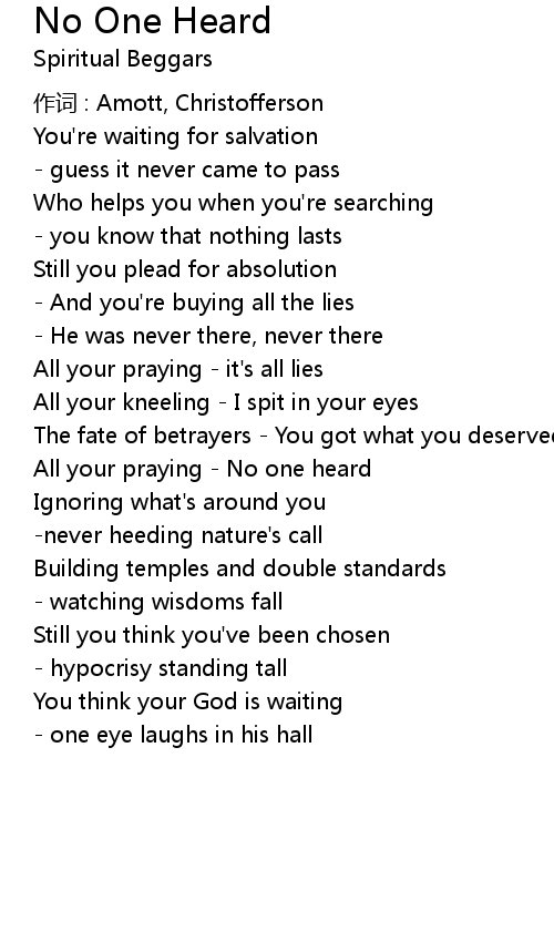 | All your praying No one heard | |