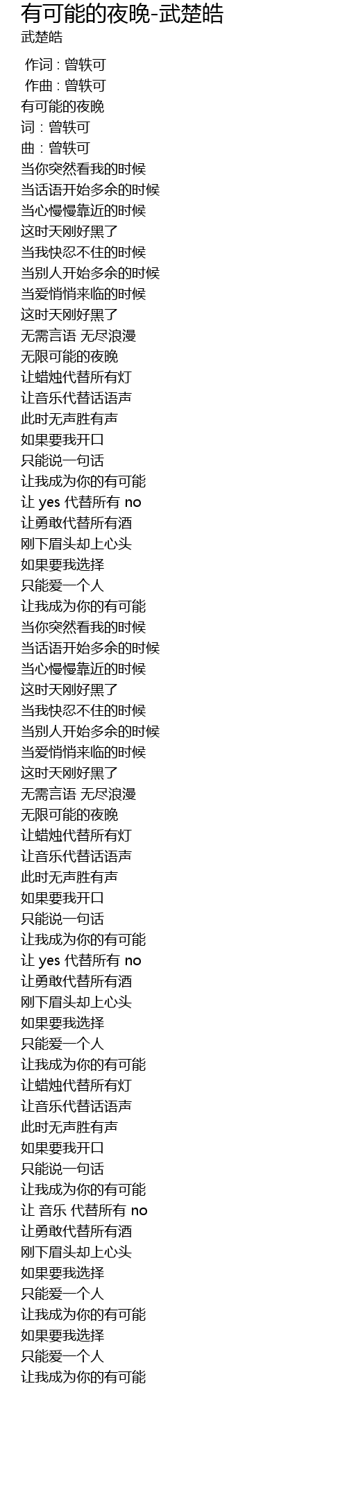 | [00:00.694] | yǒu kě néng de yè wǎn |