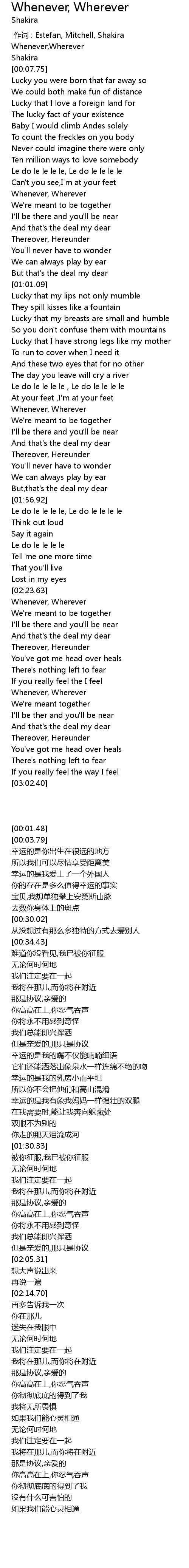 | [00:00.00] | 作词 : Estefan, Mitchell, Shakira |