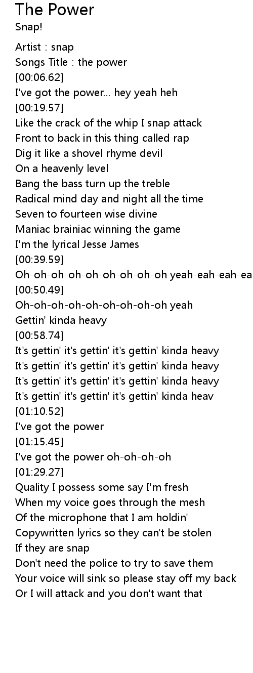 | [00:03.48] | Songs Title:the power |