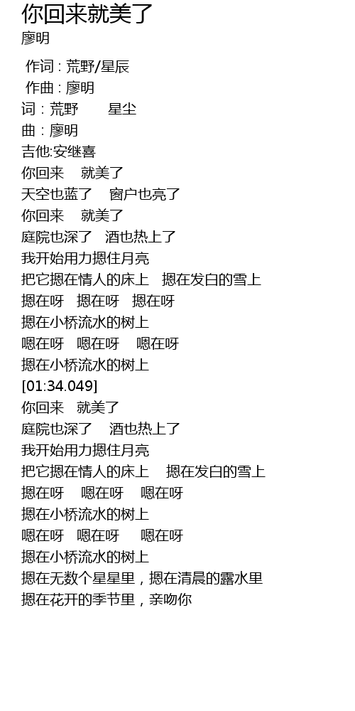 | [00:05.188] | nǐ huí lái jiù měi le |