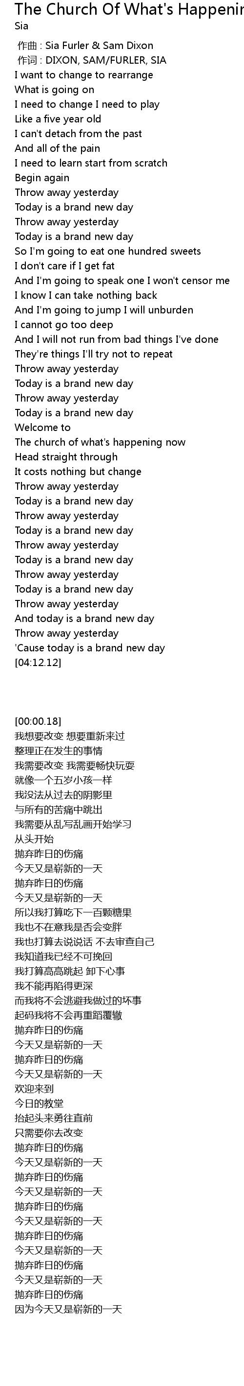 | [00:00.00] | 作曲 : Sia Furler & Sam Dixon |