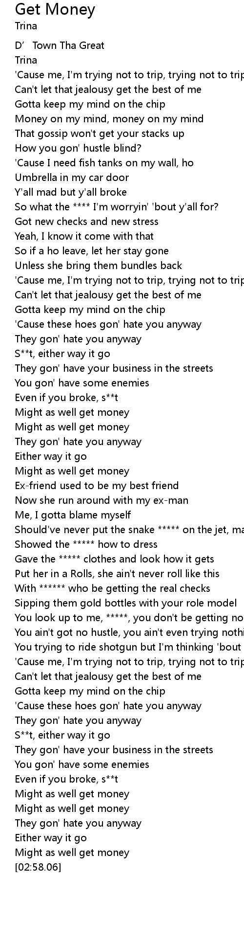 | [02:04.77] | You ain't got no hustle, you ain't even trying nothing |