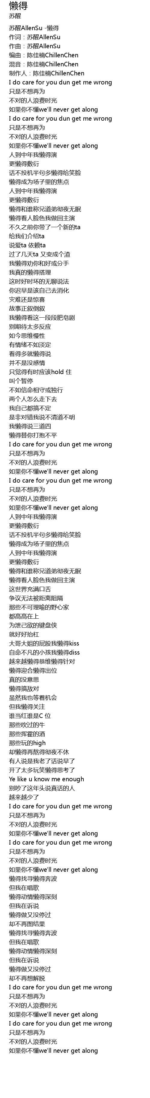 | [01:13.412] | wǒ zhēn de lǎn de dā lǐ |