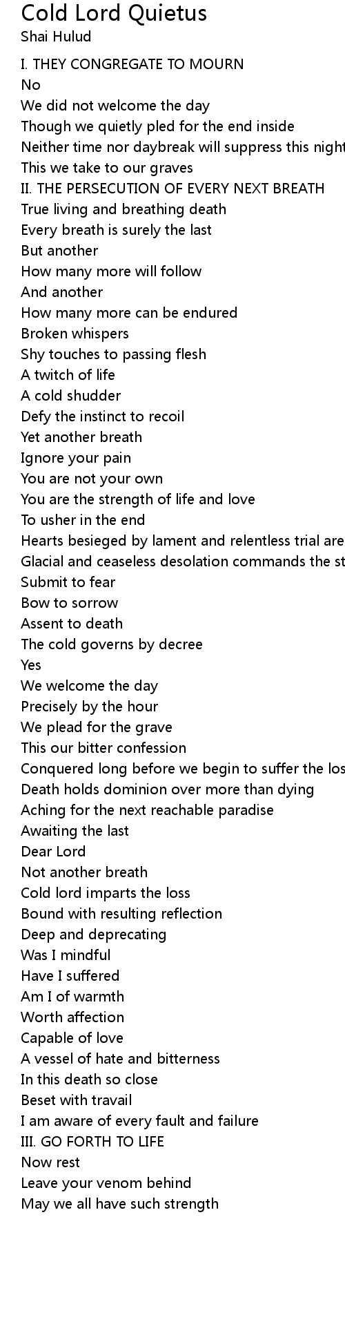 Hearts besieged by lament and relentless trial are pumping cold blood