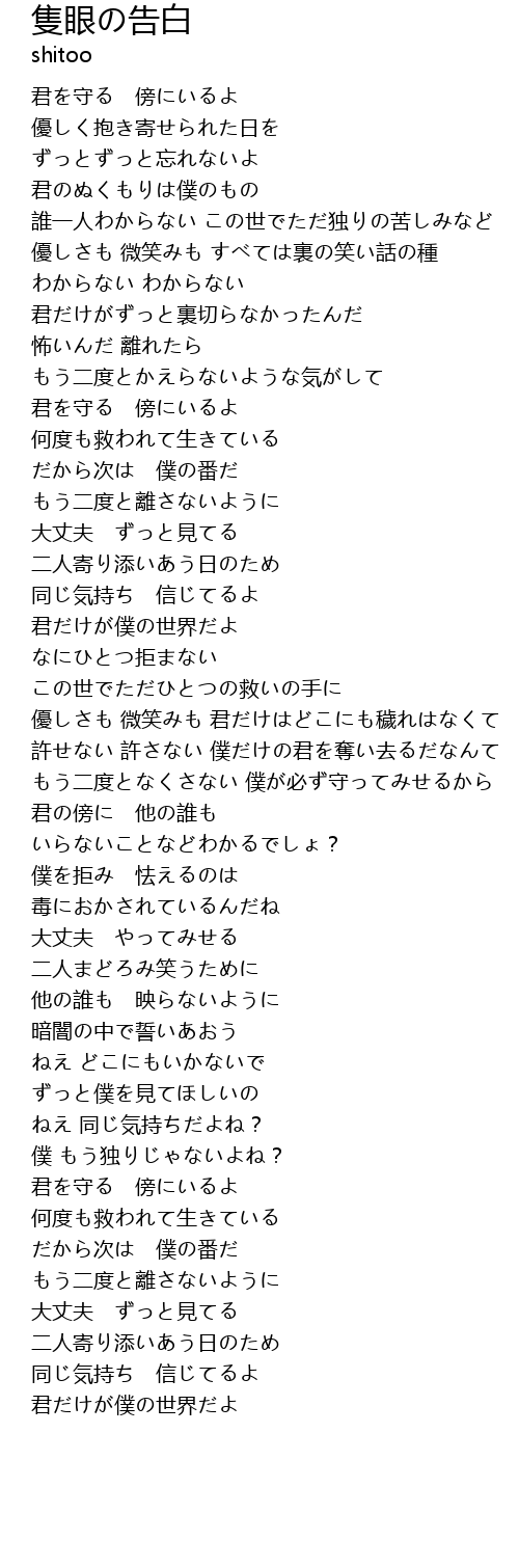 | [01:49.170] | なにひとつ拒まない この世でただひとつの救いの手に |