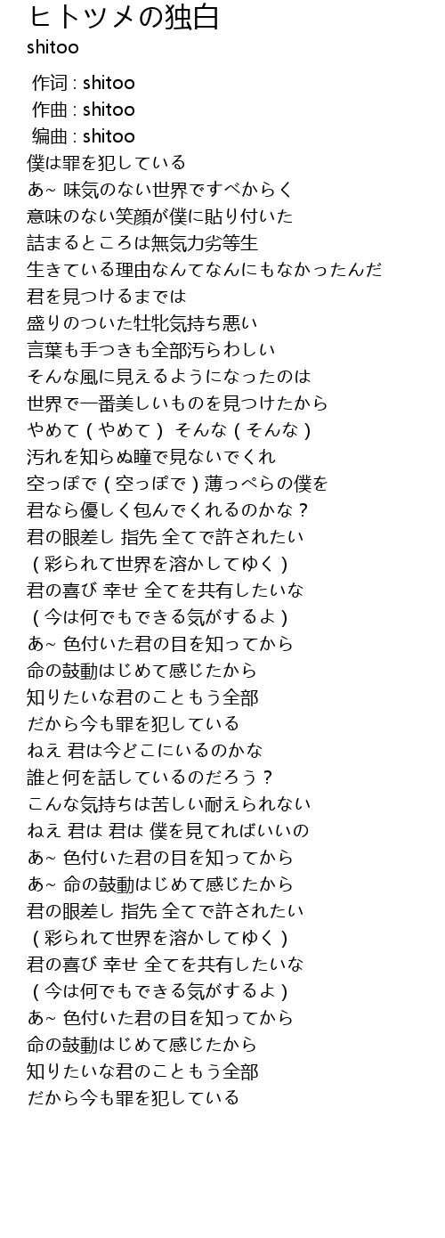 | [01:36.980] | 君の眼差し 指先 全てで許されたい |