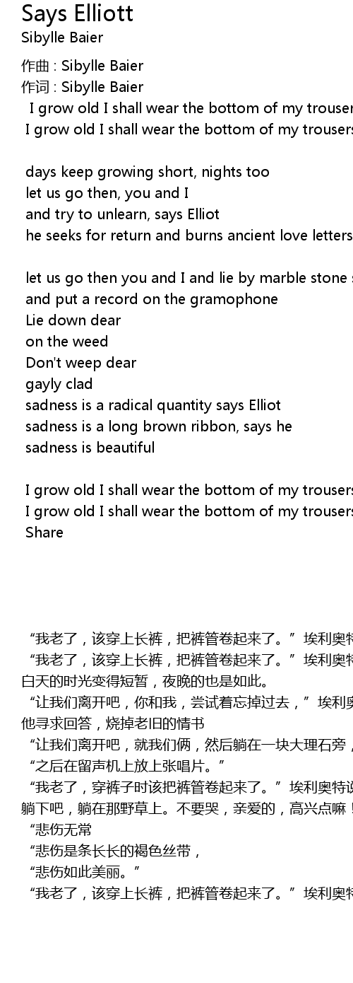 | I grow old I shall wear the bottom of my trousers rolled says Elliot | |