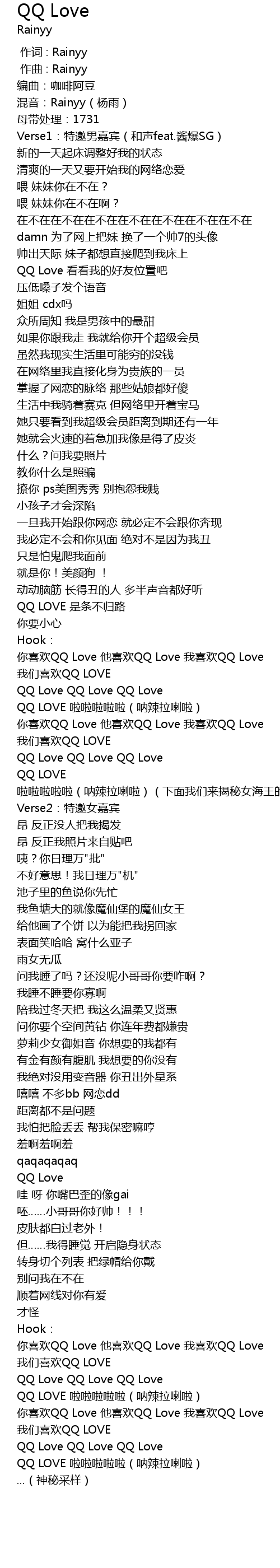 | [01:21.133] | QQ Love QQ Love QQ Love |