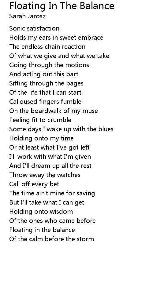 Floating in the balance |