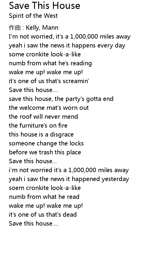 | Song | Save This House |