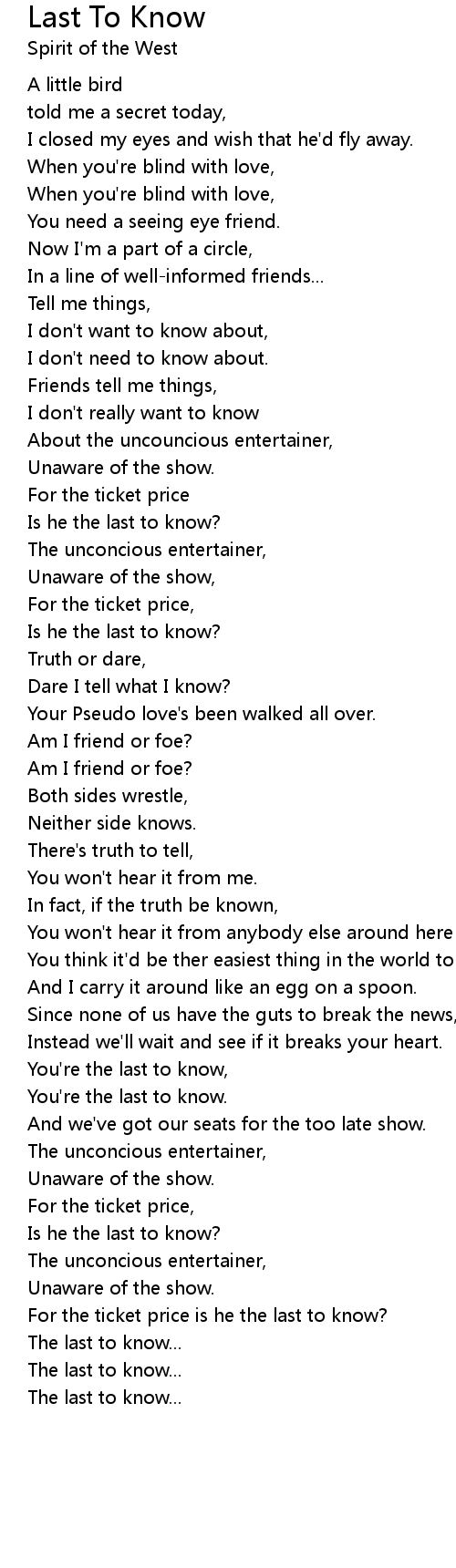 You're the last to know, |