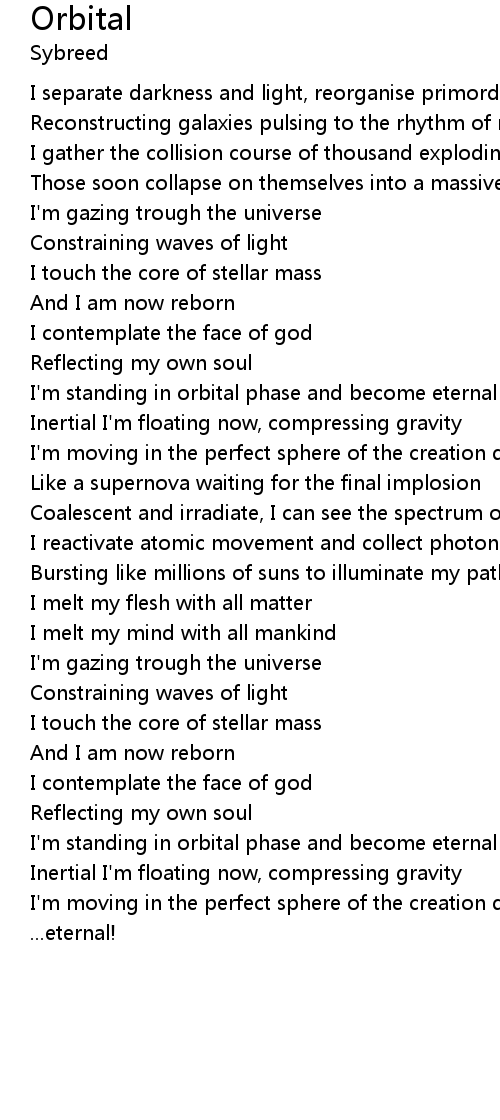 | I'm standing in orbital phase and become eternal | |