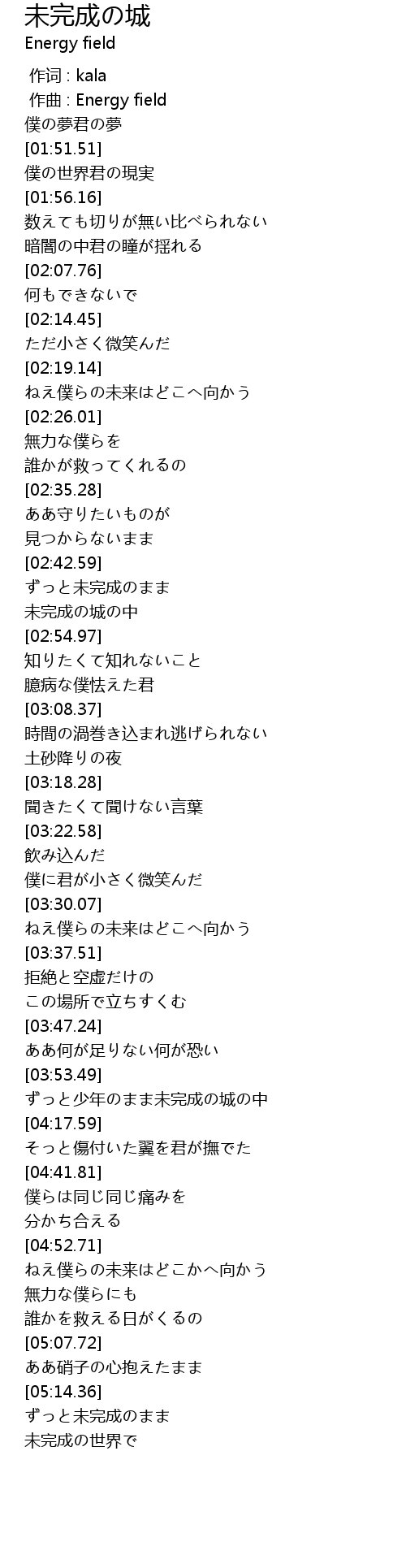 | [02:48.68] | 未完成の城の中 |