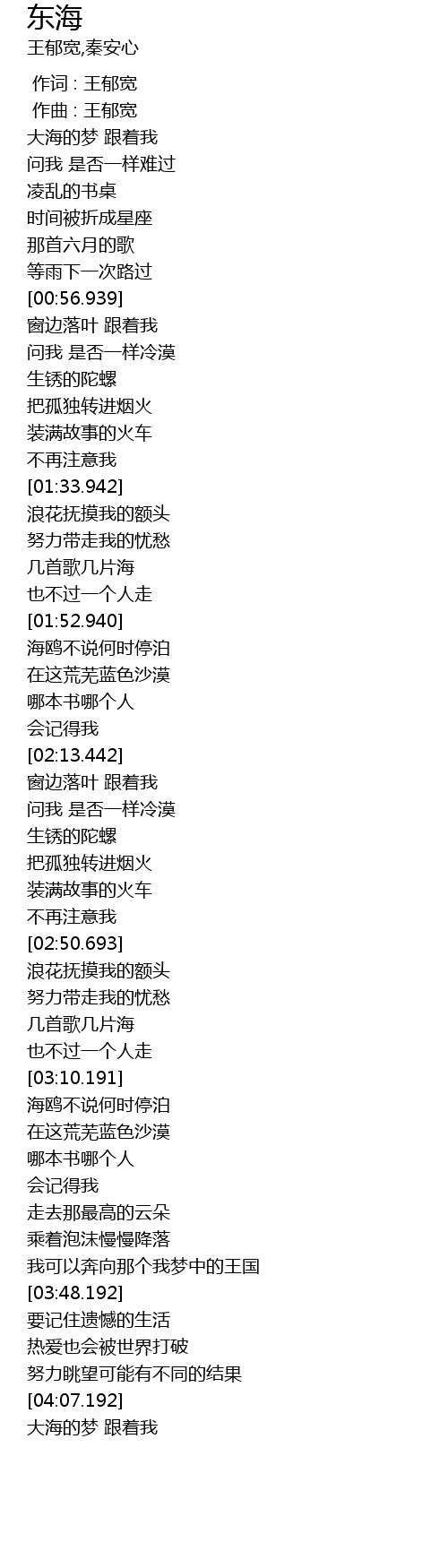 | [03:00.942] | 几首歌几片海 |