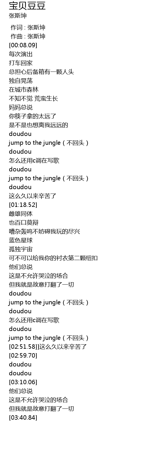 | [02:32.78] | jump to the jungle bù huí tóu |