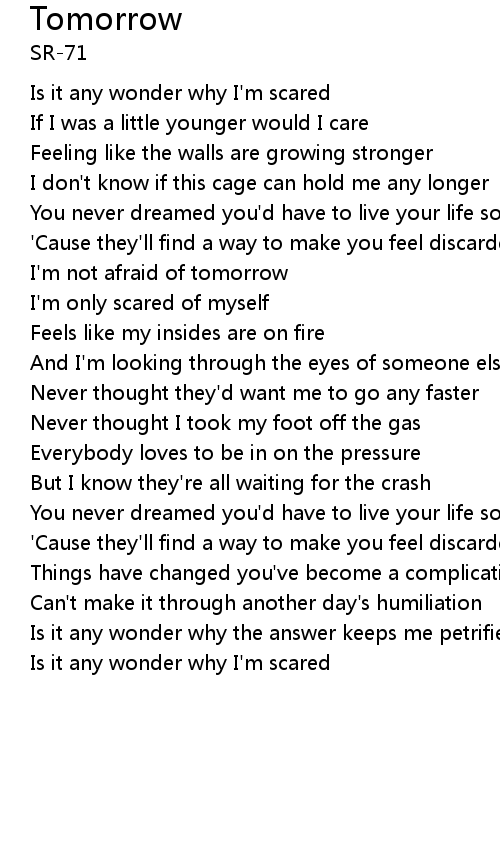 | I'm not afraid of tomorrow | |