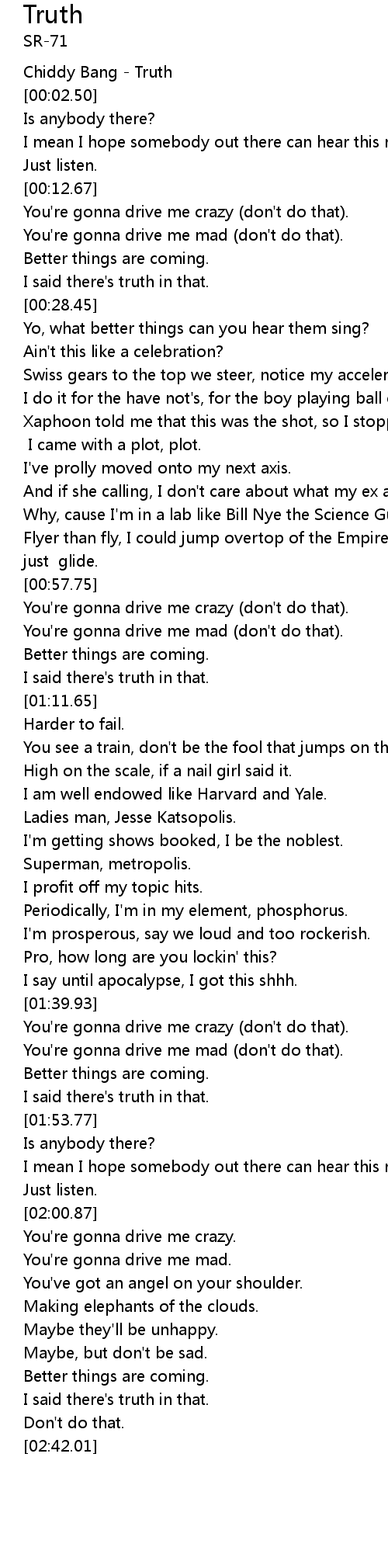 | [00:19.42] | You're gonna drive me mad (don't do that). |