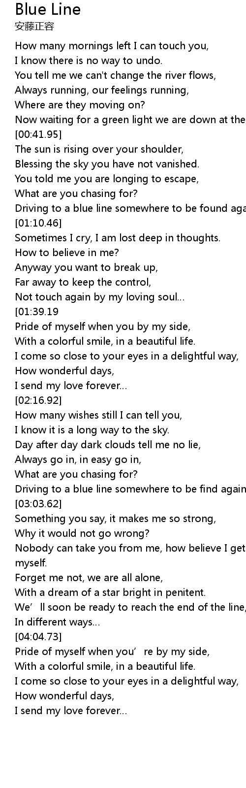| [01:04.11] | Driving to a blue line somewhere to be found again. |
