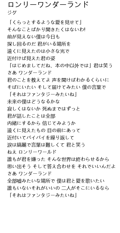 | [02:18.51] | 全部嘘みたいな場所で 僕は君と愛を歌いたい |