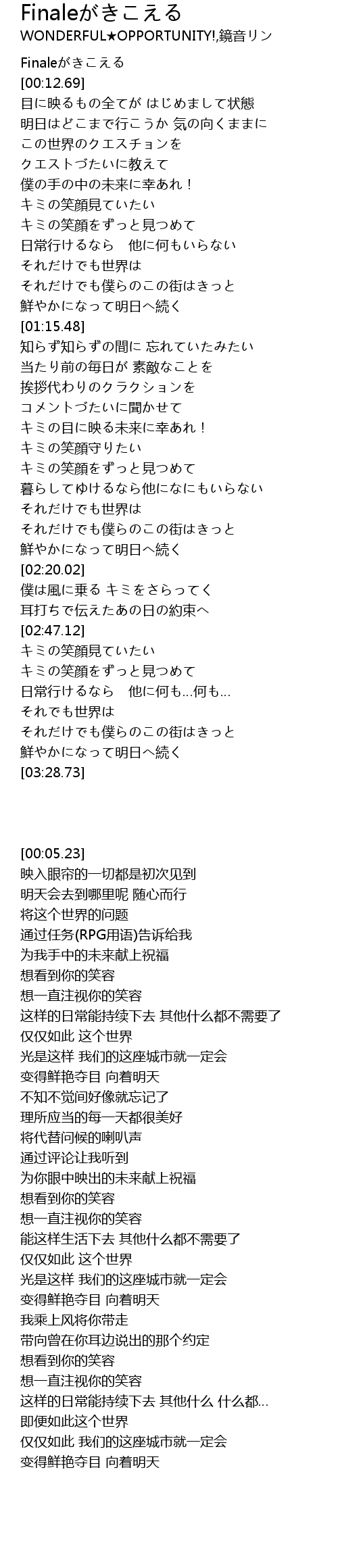 | [00:20.29] | 目に映るもの全てが はじめまして状態 |