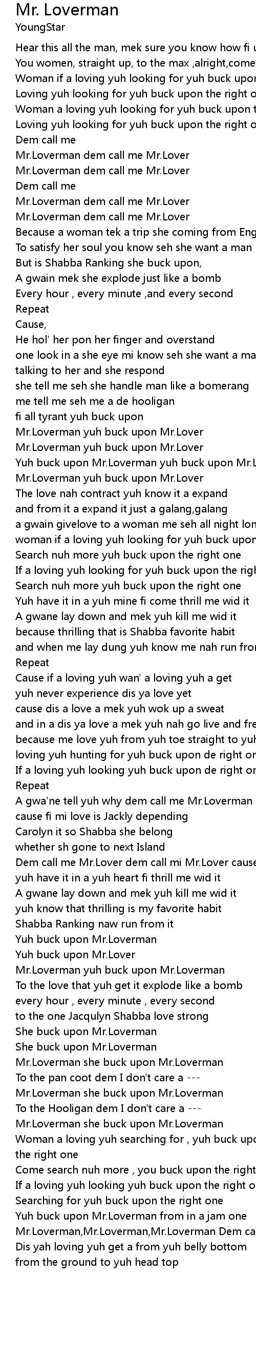 Yuh buck upon Mr.Loverman yuh buck upon Mr.Lover |