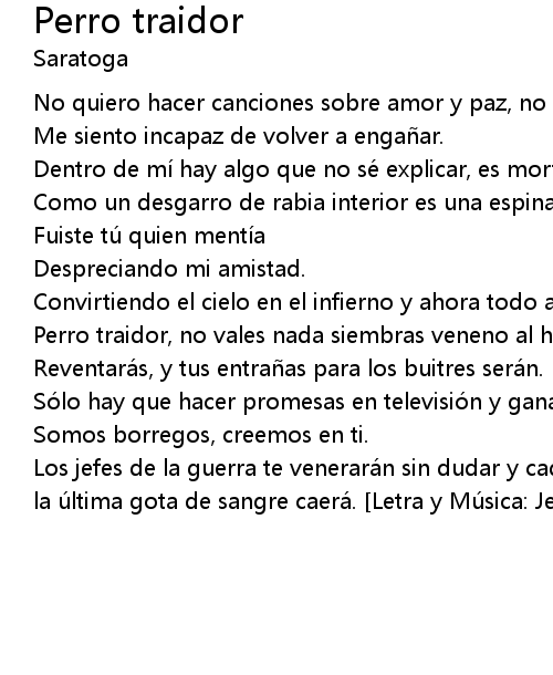 | Perro traidor, no vales nada siembras veneno al hablar. | |
