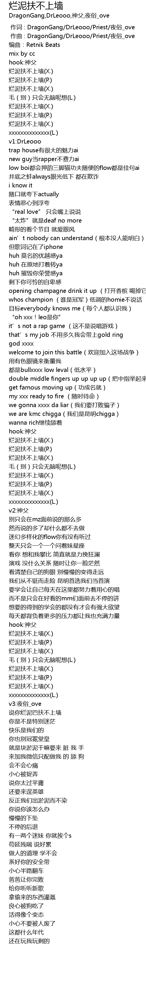| [00:00.000] | 作词 : DragonGang/DrLeooo/Priest/夜俗_ove |