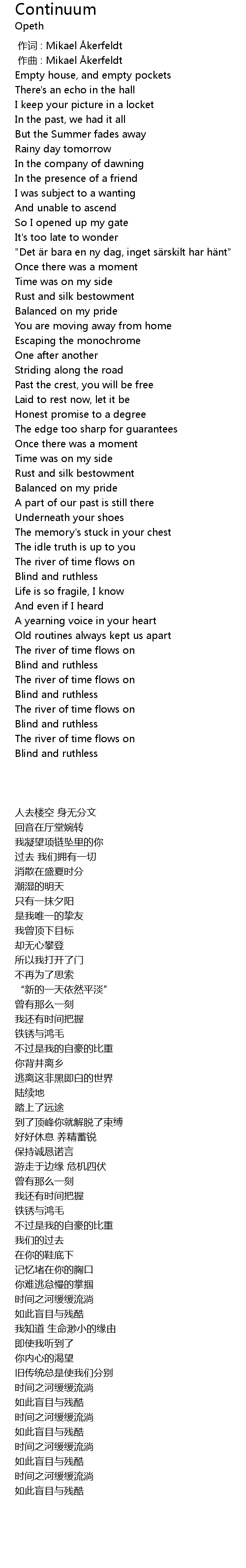 | [00:00.00] | 作词 : Mikael Åkerfeldt |