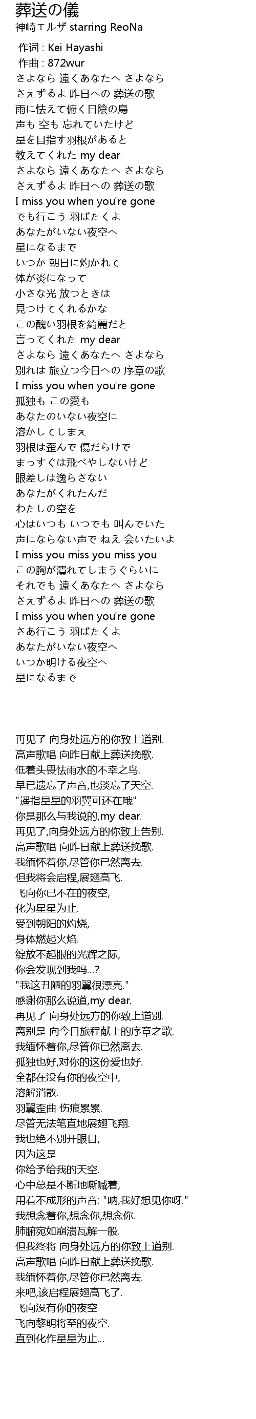 | [00:07.84] | さえずるよ 昨日への 葬送の歌 |