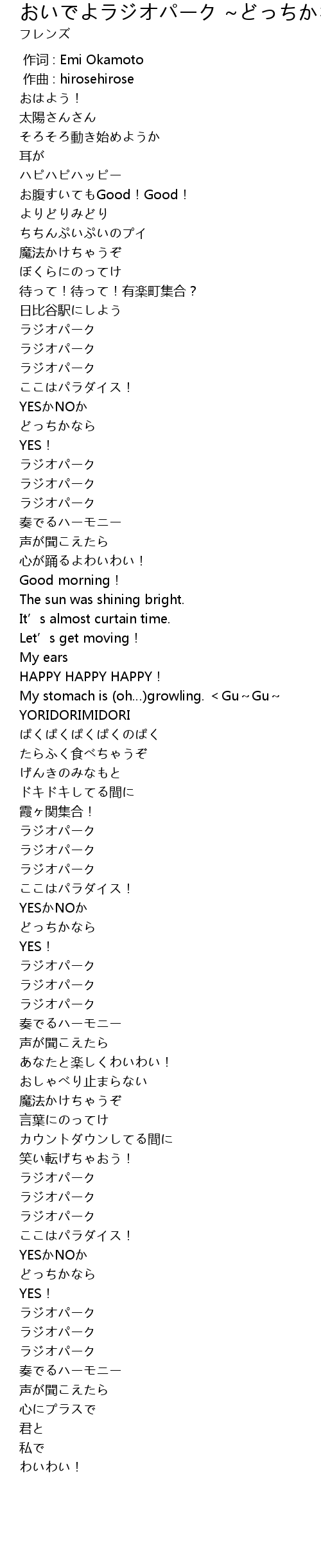 | Song | おいでよラジオパーク ~どっちかならYES!~ |