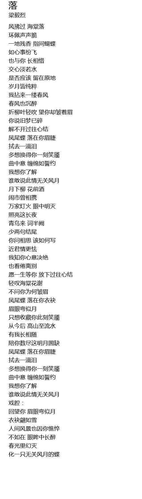 | [00:35.26] | 一地残香 指间蝴蝶 |