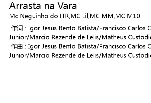 | [00:00.00-1] | 作词 : Igor Jesus Bento Batista/Francisco Carlos Cassiano Junior/Marcio Rezende de Lelis/Matheus Custodio dos Santos |