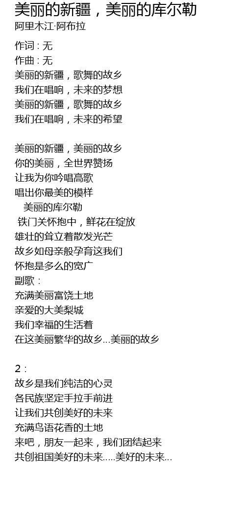 | Song | 美丽的新疆,美丽的库尔勒 |
