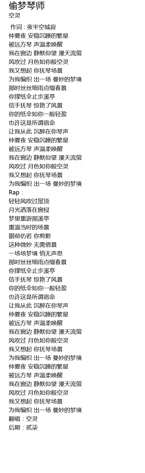 | [0:0.000] | 翻唱:空灵 |