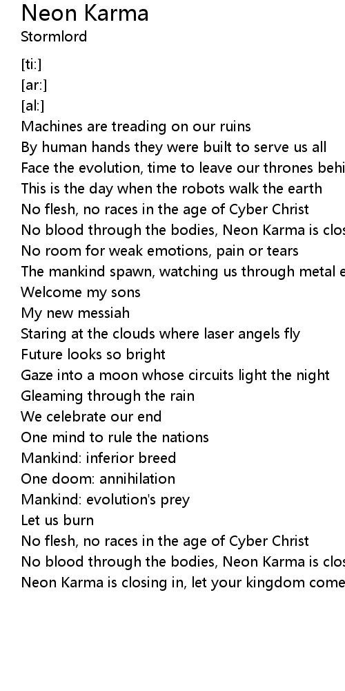 Neon Karma is closing in, let your kingdom come |