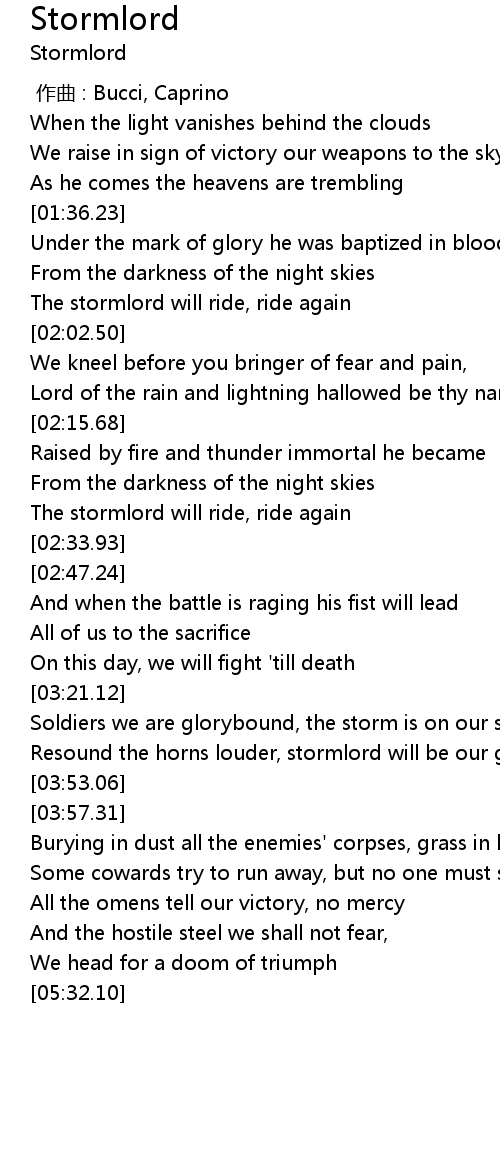 | [03:36.61] | Resound the horns louder, stormlord will be our guide |