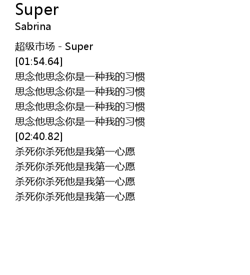 | [03:24.38] | shā sǐ nǐ shā sǐ tā shì wǒ dì yī xīn yuàn |