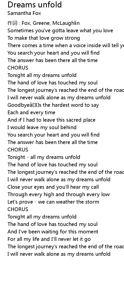 | I will never walk alone as my dreams unfold |