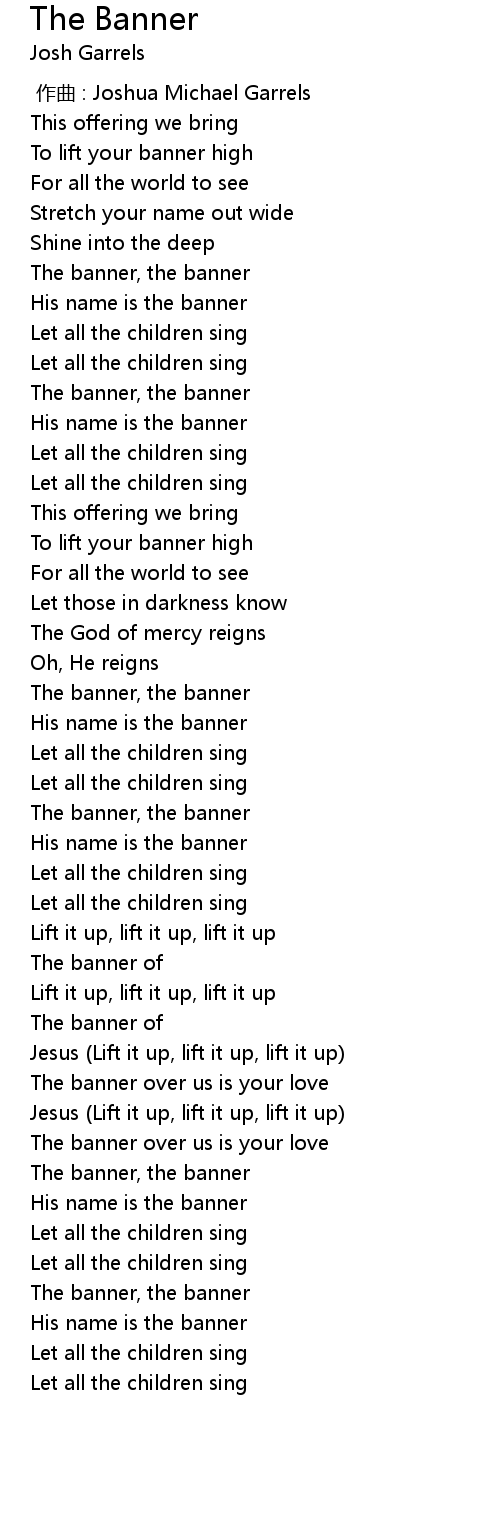 | [00:00.00] | zuo qu : Joshua Michael Garrels |