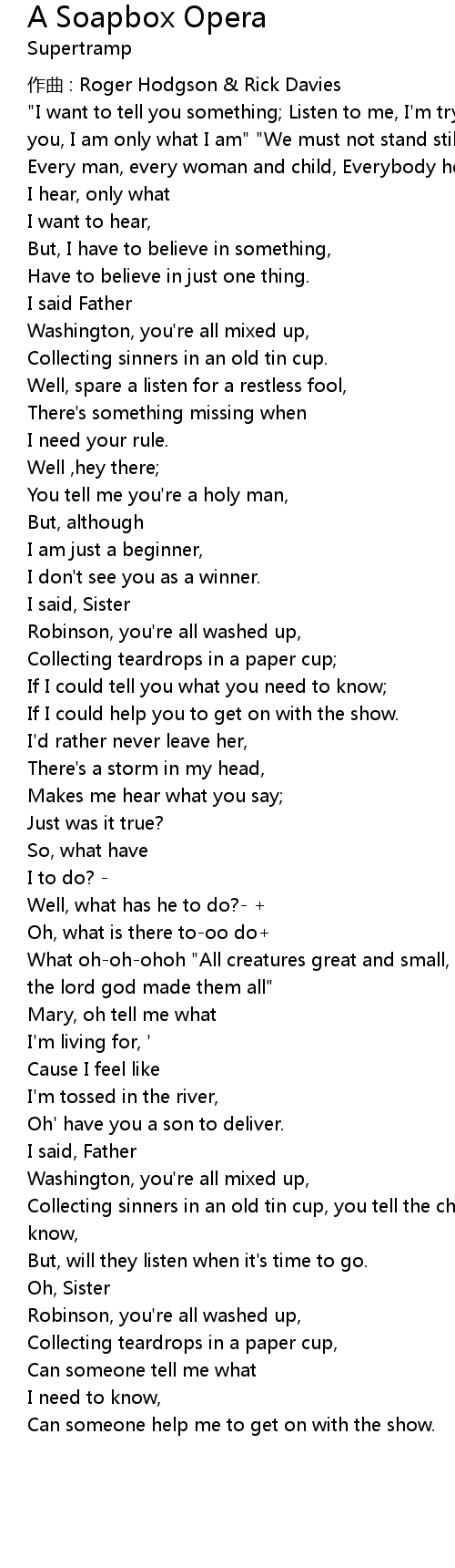 | Song | A Soapbox Opera |