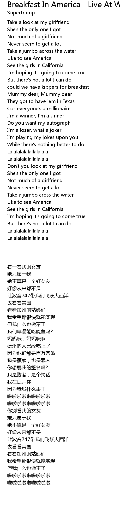 Breakfast In America - Live At Wembley/1979 Lyrics