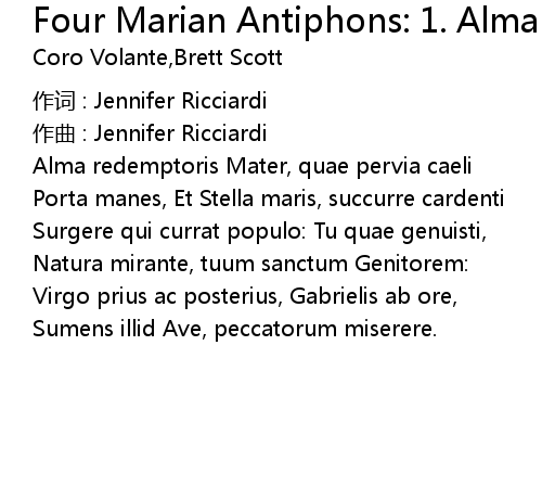 | Song | Four Marian Antiphons: 1. Alma Redemptoris Mater |