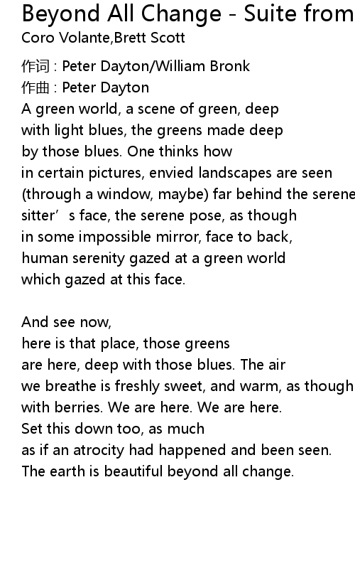 | The earth is beautiful beyond all change. |