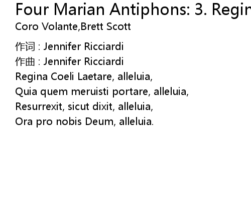 | Song | Four Marian Antiphons: 3. Regina Coeli Laetare |