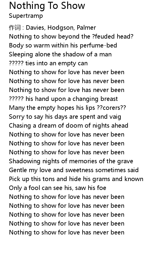 | Nothing to show for love has never been | |